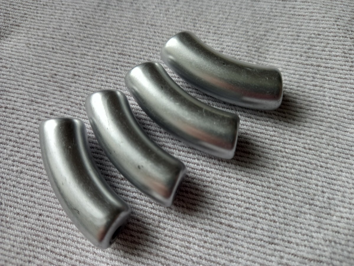 Queste perline in argento opaco a forma di tubo curvo sono realizzate in acrilico . Lasciatevi ispirare dalla loro forma originale per realizzare tanta bigiotteria fai da te.