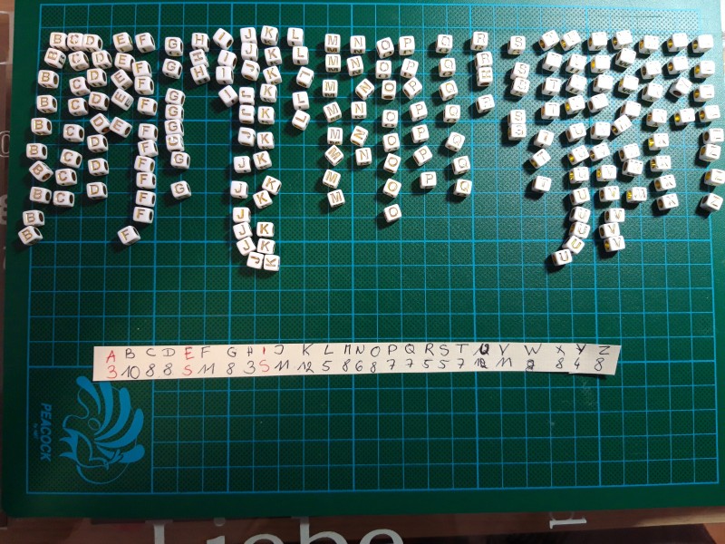 Venduto in confezioni da 200. La quantià di ogni lettera è aleatoria.