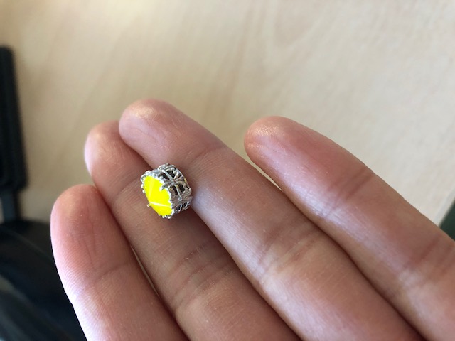 J'ai réussi avec de la patience et une Dremel pour agrandir l'espace en dessous des griffes pour finalement encastrer le cabochon.
