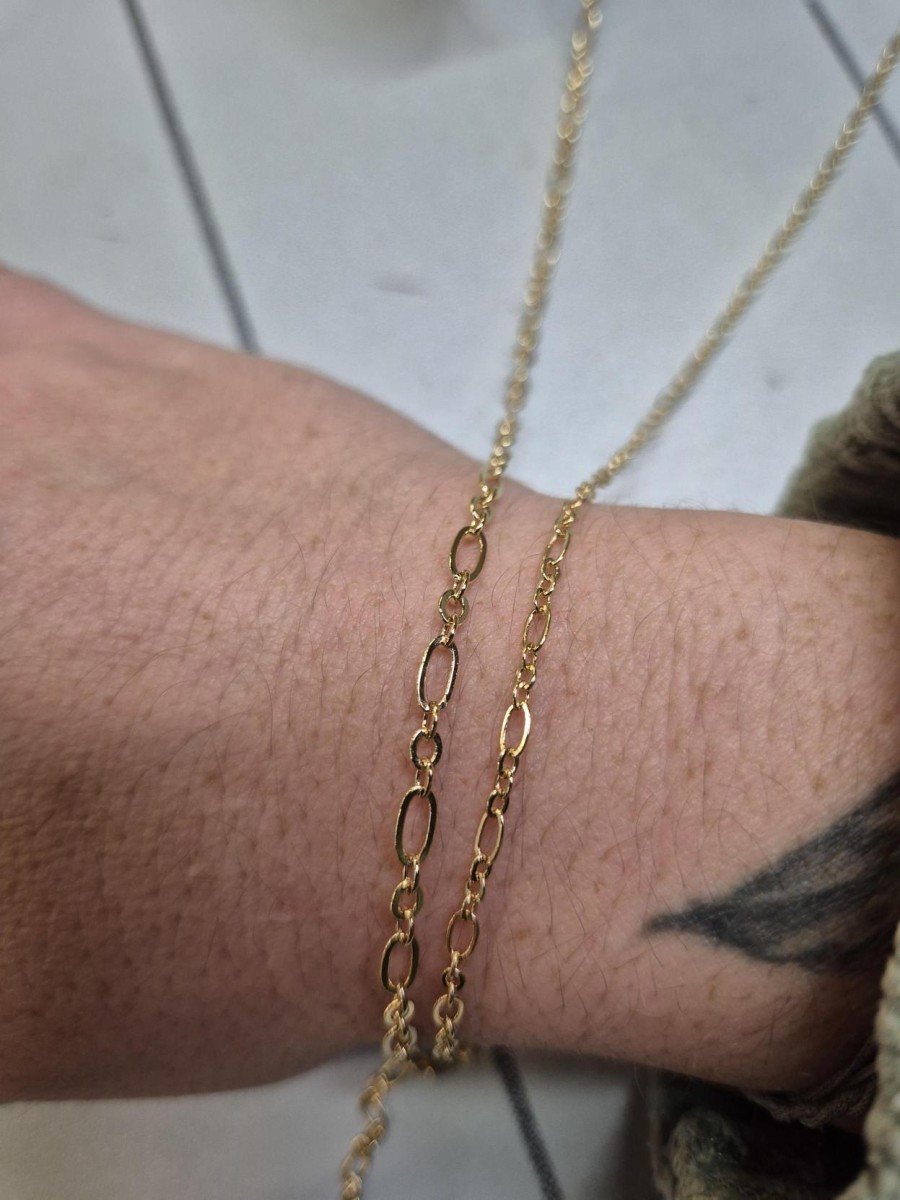 Innamorati di questacatenaplaccata in oro da 3 micron! La sua maglia è composta da tre piccole maglie rotonde che si alternano tra ogni grande maglia ovale.