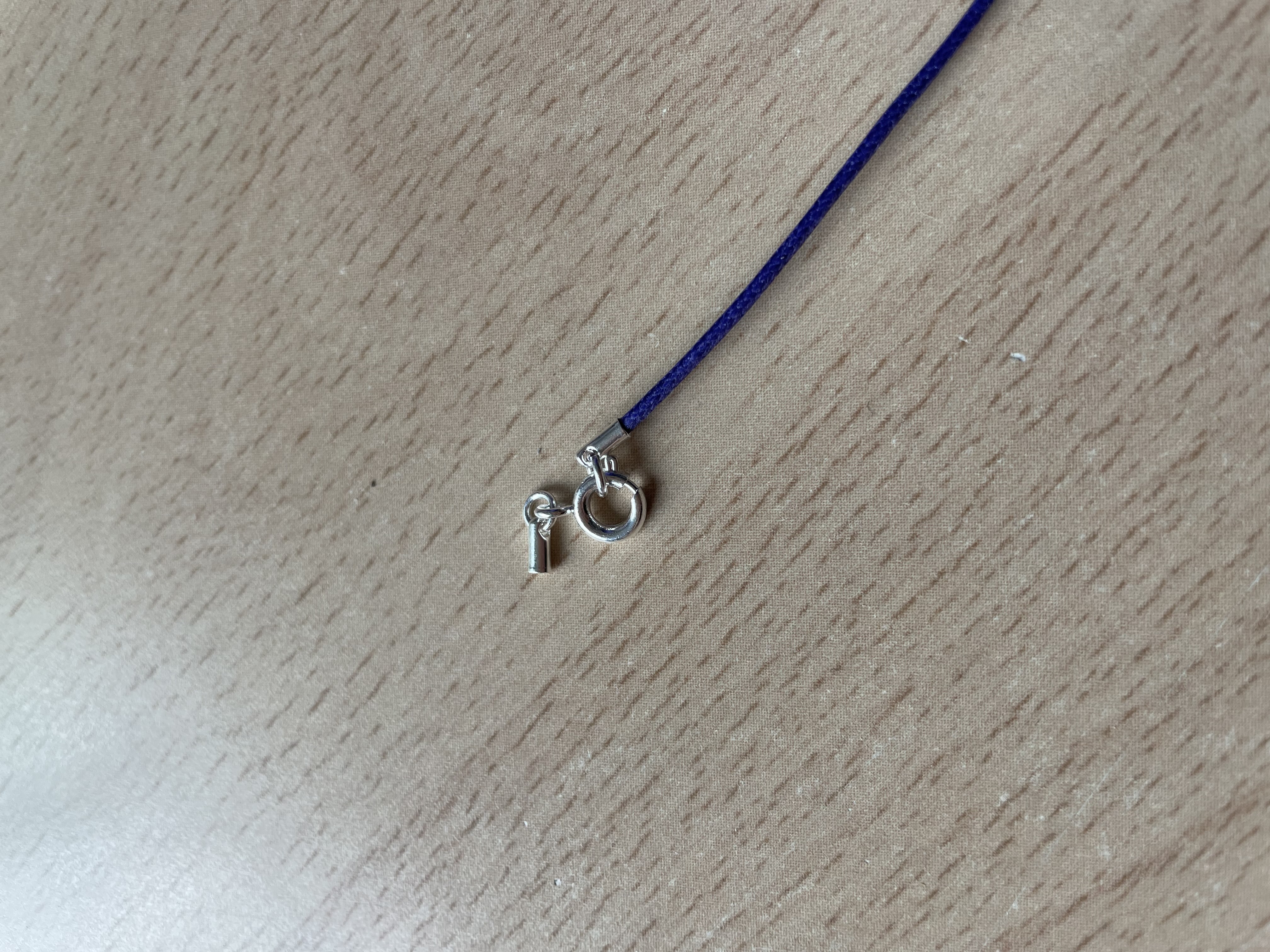 Chiusura a molla con terminali per cordoni da 1 a 1.3 mm in ottone.