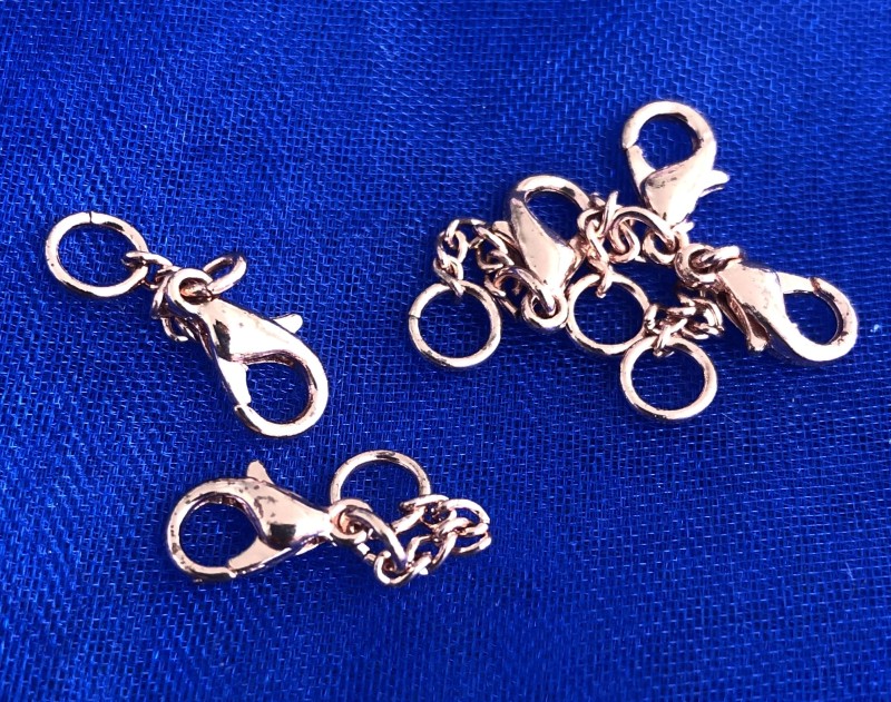 Chiusure moschettone 10 mm con catenina d'estensione e anello, indispensabili per la creazione di bijoux DIY.