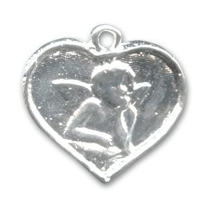 Ciondolo angelo cuore mm. 15x16 argentato x1