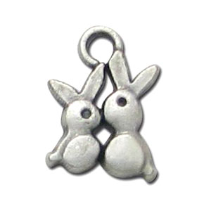 Ciondolo conigli mm. 15 Placcatura argento antico x1