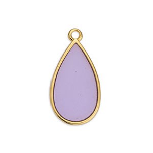 Questo Ciondolo a forma di goccia è realizzato in zamac placcato oro fino a 24 carati ed è rivestito di resina epossidica colorata effetto vetro (trasparente).