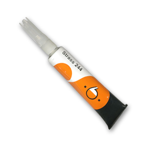 Un adesivo speciale del un-componente per incollare vetro -, uno strass- o i simili-rhinestones incolori e solvente-sopportati (per esempio PureCrystalstones) con un diametro equivalente fino a 5 millimetri (a PureCrystal ss 22) ad una varietà di materiali.