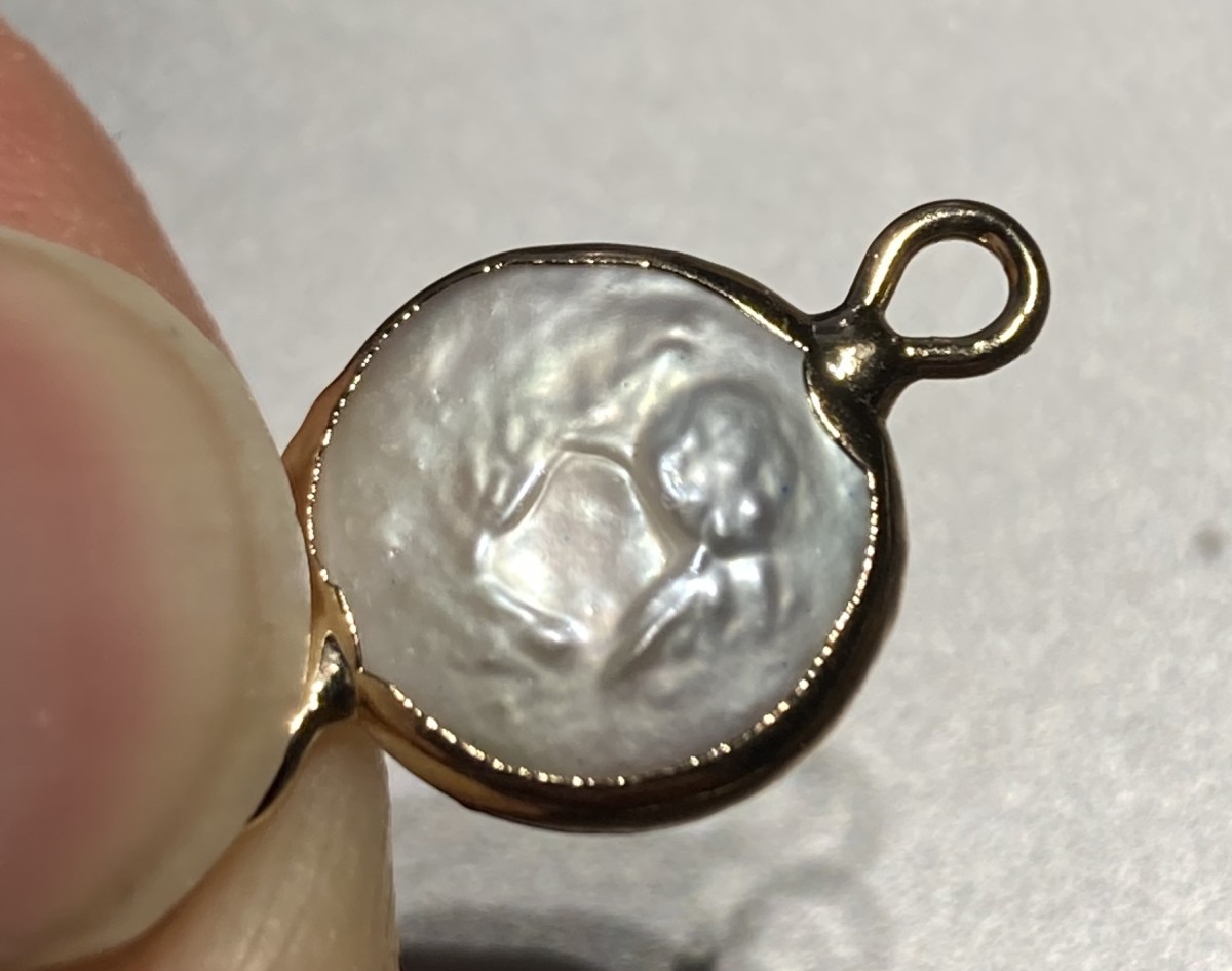 Intercalare rotondo perle d'acqua dolce e palma zirconi 23x15mm Bianco - Dorato x1