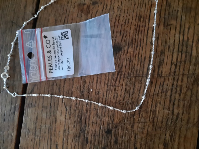 Rifinito con due anelli distanti 2 cm l'uno dall'altro per regolare la lunghezza del girocollo e la sua chiusura a molla.