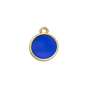 Mini ciondolo tondo resina epo. effetto vetro 11x8 mm Dorato oro fino - Cobalt x1