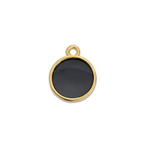 Mini ciondolo tondo resina epo. effetto vetro 11x8 mm Dorato oro fino - Nero x1