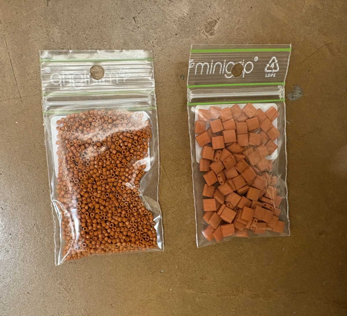 Perle giapponesi di dimensione 11/0. (circa mm.1.27 nel senso del foro, mm.1.6 di diametro)