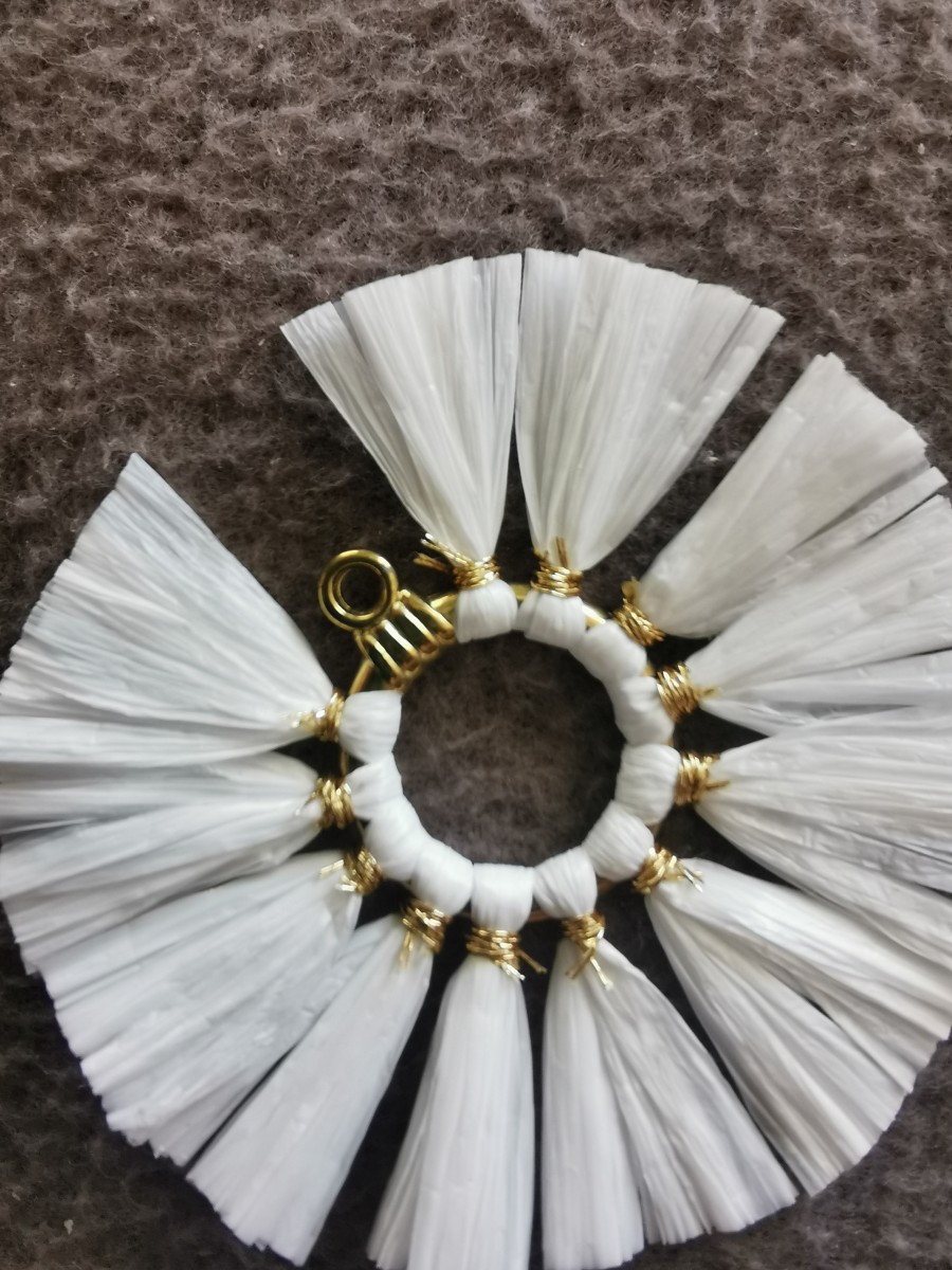 Pendente ventaglio - pompon rafia naturale effetto molto tendenza- Bianco