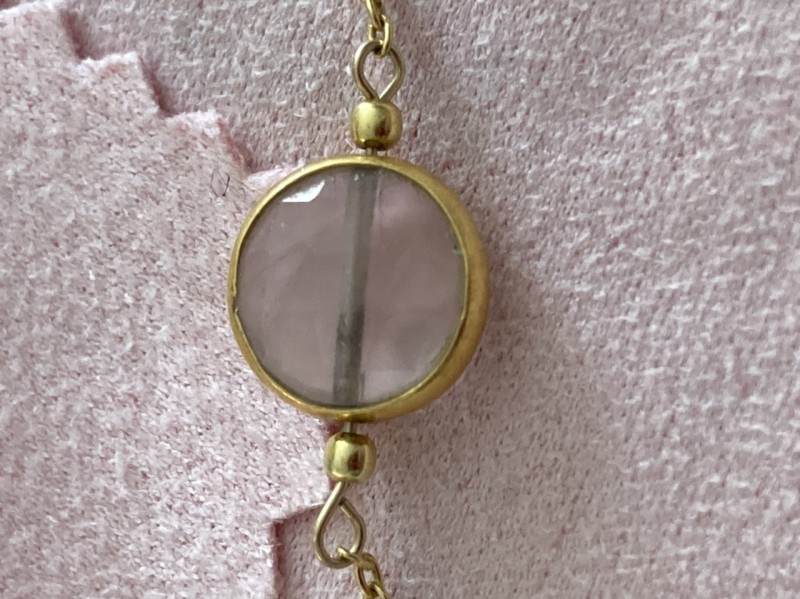 Perla rotonda sfaccettata pietra semi preziosa, con castone in argento 925finitura dorata in oro fino 24K.
