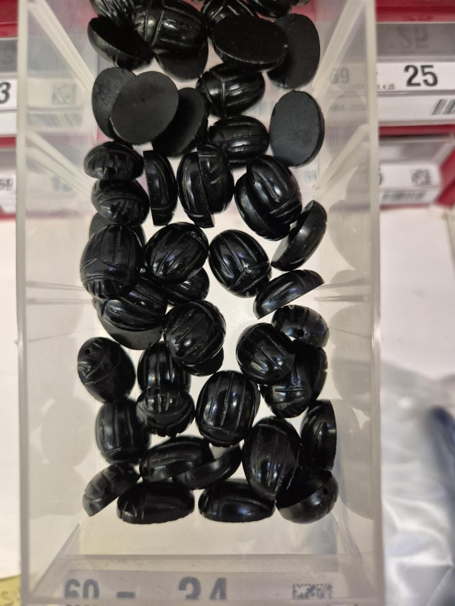 Perlina di scarabeo incisa ovale 14x10 mm in pietra semi preziosa - Onice nero x1
