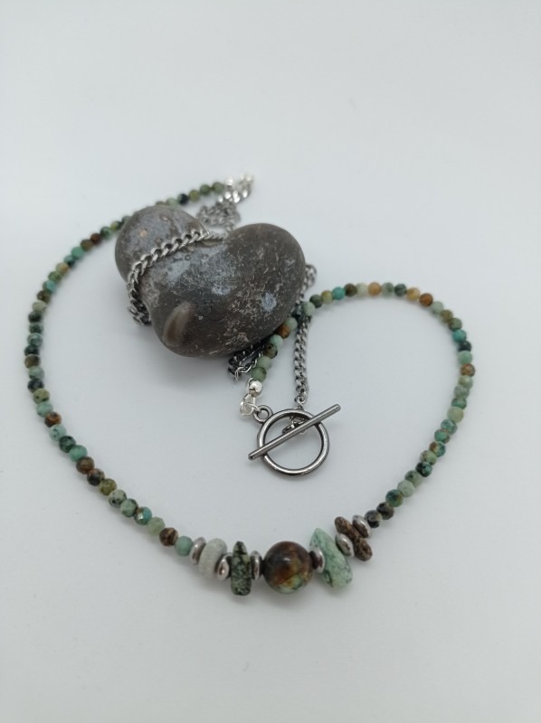 Basta infilare queste perle di turchese africano su un filo di nylon per creare una collana di perline alla moda.