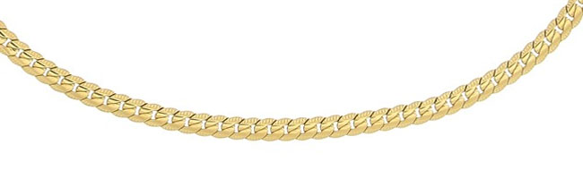 Questa catena è ancora più ariosa della gourmette. È piatta quando la si indossa, grazie alle maglie che si incastrano tra loro grazie a una torsione all'incrocio.