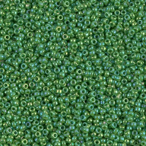 Queste piccole perle di vetro del marchio giapponese Miyuki sono perle di semi . Si tratta di perline di dimensioni 11/0 (circa 1,36 mm in direzione del foro, 2 mm di diametro). Hanno un effetto AB, che conferisce loro un aspetto iridescente. Sono i preferiti dalle perline per la tessitura di perline e la creazione di bigiotteria fai da te.