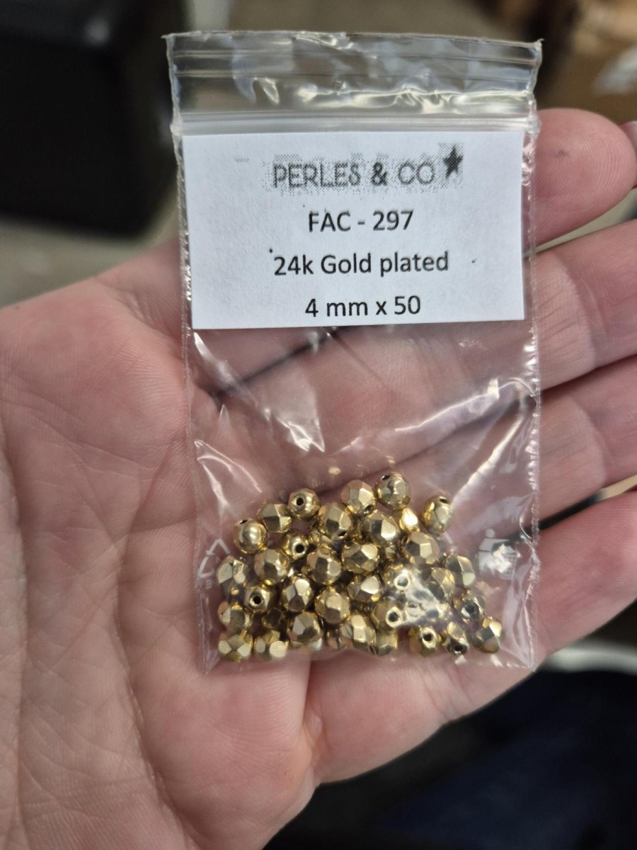 Le sfaccettate o Fire polished beads in inglese, sono tagliate a macchina e lucidate in un forno su una fiamma per dare loro un aspetto più dolce e leggermente diverso l'uno dall'altro.