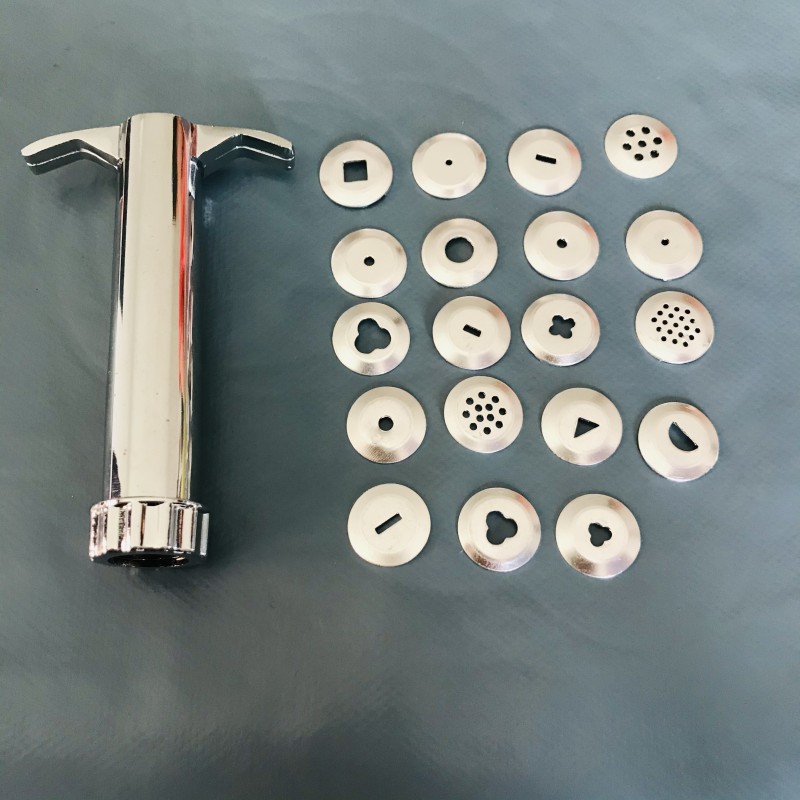 Siringa-estrusore in acciaio con 19 dischetti intercambiabili.