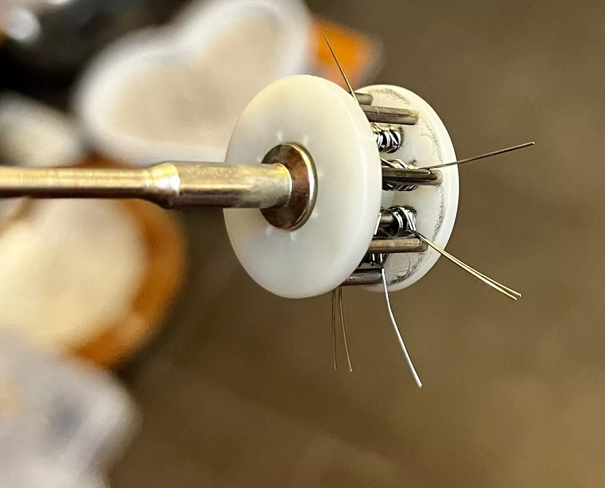 Per modellare il pezzo in lavorazione, posizionarlo contro la spazzola rotante. L'azione delle setole spazzola delicatamente il gioiello, creando graffi piccoli, fini e uniformi sulla superficie del metallo. L'opacizzazione sarà uniforme e darà una finitura satinata.