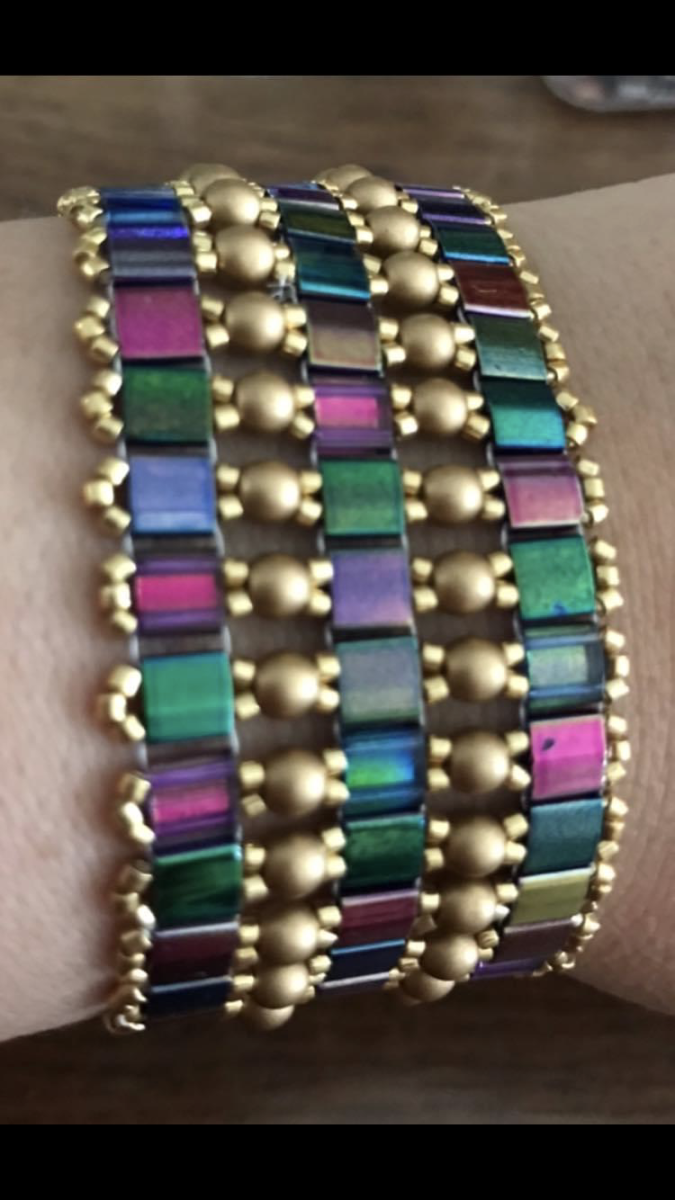Per creare altre versioni di colore di questo braccialetto, date un'occhiata alle nostre perle di semi Miyuki 15/0, alle perle Miyuki Tila e a tutte le nostre perle rotonde di vetro ceco da 4 mm.