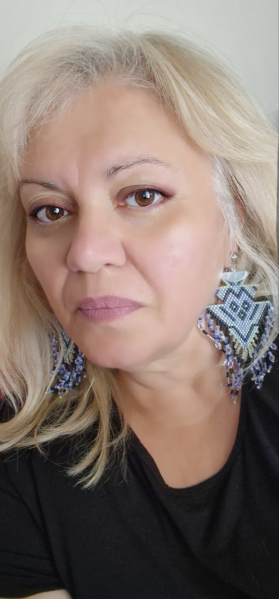 Poi, una volta che avete finito di tessere questo primo triangolo, intrecciate la parte superiore degli orecchini.