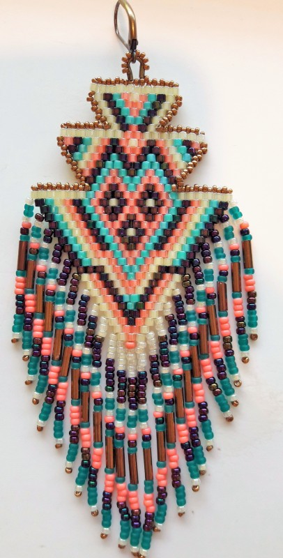 In questo 1° passo, intrecceremo Miyuki delica 10/0 in brickstitch, iniziando dalla parte più grande (quella dove aggiungeremo le frange) secondo il modello che potete trovare qui: