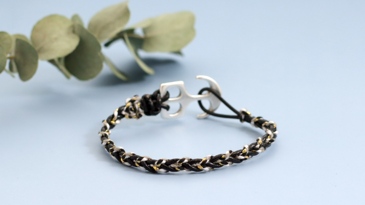 Il braccialetto è composto da una treccia a 4 fili e un nodo macramé alla chiusura. La chiusura ad ancora marina in argento rende il braccialetto facile da indossare. Una volta sul polso, tiene bene. Puoi anche incollare la tua treccia direttamente in un fermaglio di pizzo magnetico. In questo caso, non c'è bisogno di fare nodi di macramè. Ho messo alcuni altri fermagli e corde compatibili nella sezione delle variazioni in fondo alla pagina.