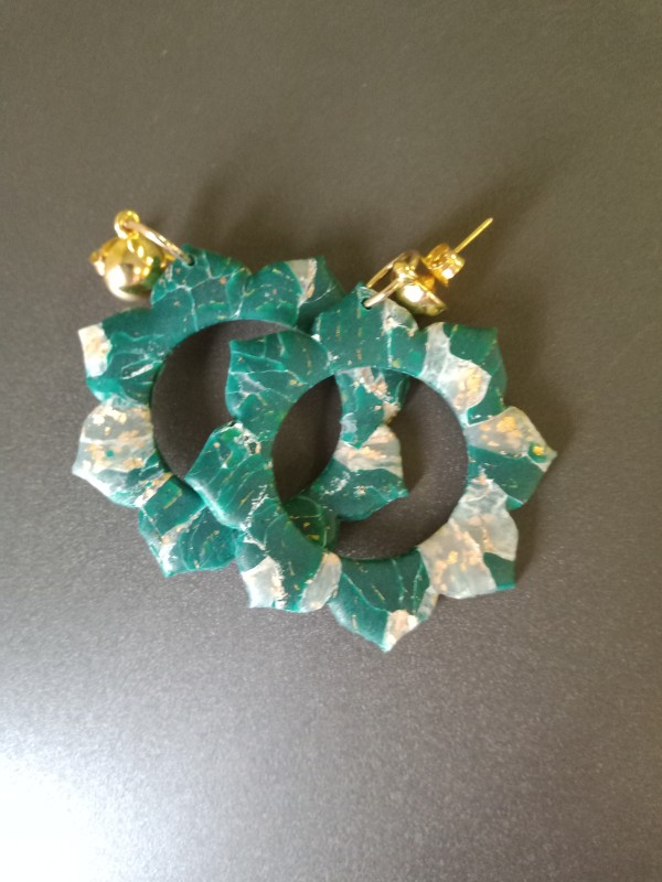 In questo tutorial troverete una delle più belle tecniche di imitazione con l'argilla polimerica, l' effetto pietra . Comporrete il vostro colore di pietra facendo una miscela non omogenea di pasta traslucida bianca e pasta opaca verde smeraldo. Userete una vera foglia d'oro e poi una vernice acrilica per ottenere il vostro disegno.