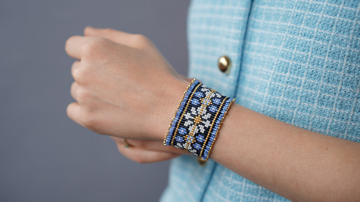 Abbiamo preparato un video tutorial completo per guidarvi passo dopo passo in questa tecnica. In questo video, imparerete come aggiungere facilmente delle perle al bordo della vostra trama a telaio. Questa tecnica funziona con un'ampia gamma di perline, ma per questo modello ho utilizzato le perline Miyuki Delica 11/0, ideali per ottenere una finitura pulita e uniforme.