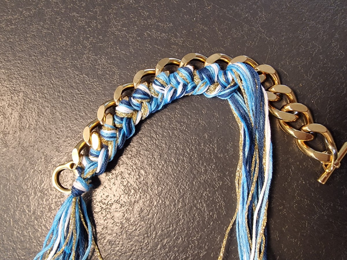 Iniziate tagliando la catena alla lunghezza desiderata. Prendetene un po' meno del diametro del vostro polso, poiché la chiusura è piuttosto larga.