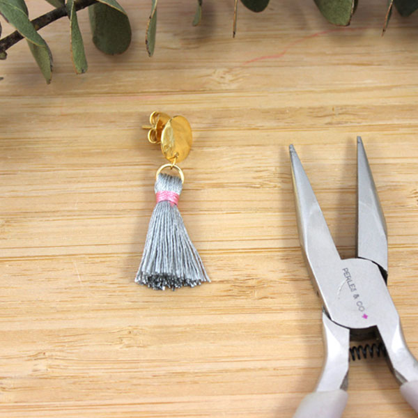 Fissate il pompon al portaorecchini utilizzando l'anello ovale.