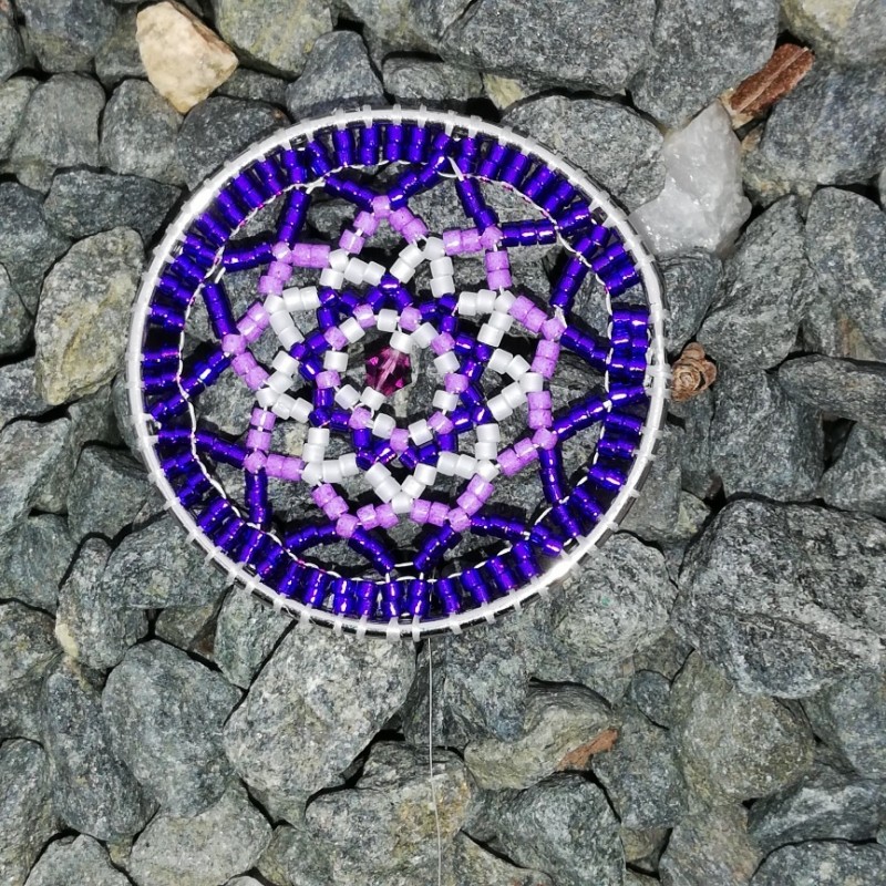 Questa tessitura si esegue a partire dalla fila esterna, utilizzando la tecnica del punto doppio mattone e le perle verde smeraldo.