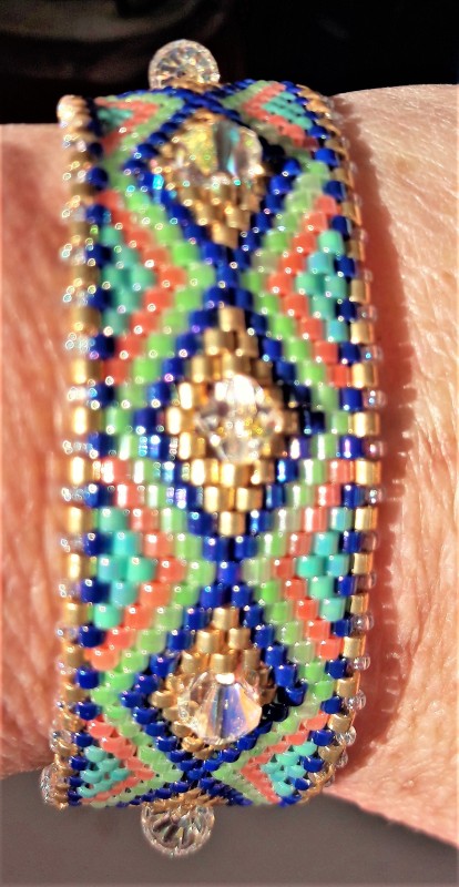Sempre alla ricerca di tecniche di tessitura dimenticate o nuove, Marjorie, alias Emjy, ci suggerisce di realizzare un braccialetto intrecciato fai da te con la tecnica del peyote circolare. In questo tutorial scoprirete come realizzare questo gioiello utilizzando le perle di vetro Miyuki Delicas e alcuni Biconi PureCrystal.
