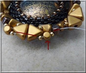 Fase 18: Per la chiusura: girate il pendente, inseritelo in un Minos e fate un'asola 3x di perle di seme per rafforzare la chiusura.